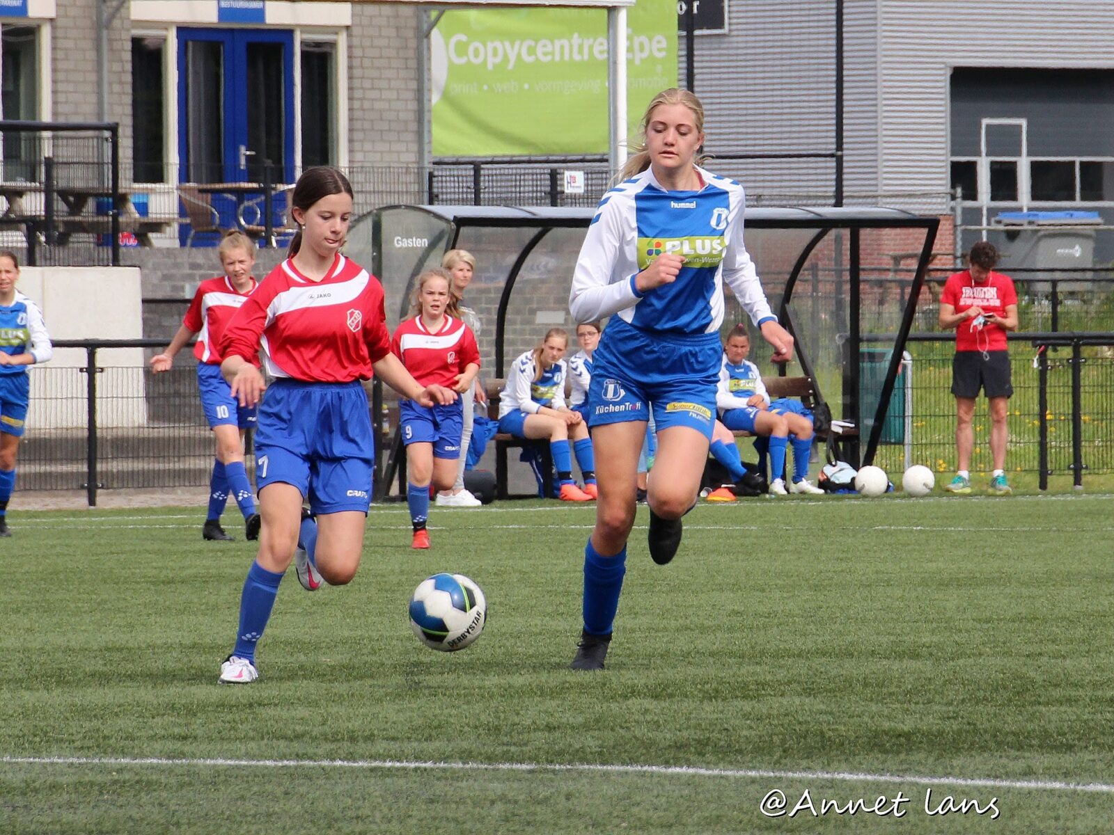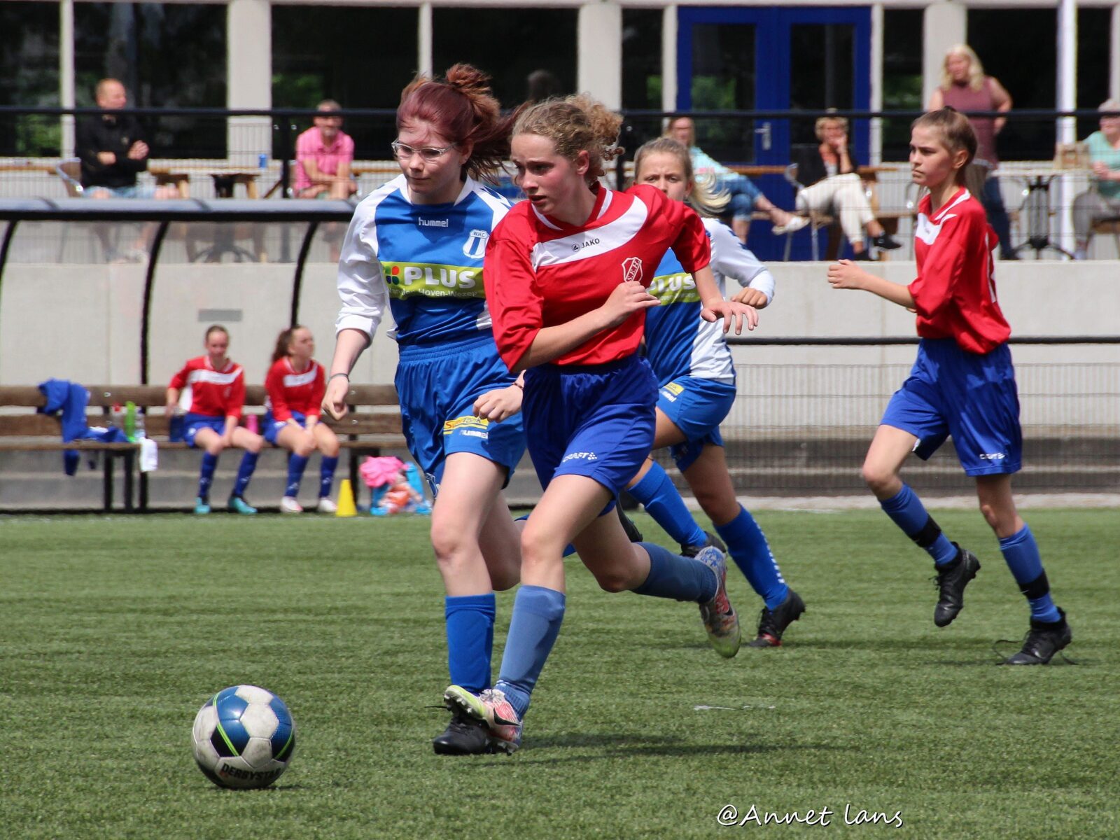 Als kers op de taart werd er aan het eind van het seizoen nog gespeeld om de Regiocup. Om ze nog wat extra uit te dagen hebben we de MO13-1 ingedeeld bij de MO15-1. Ook hier hebben ze zich kranig verweerd. Als trainers zijn we trots om te zien hoe ze zich dit seizoen hebben ontwikkeld. Als individuele speelster en als team! En niet te vergeten als mens (lees: puber)…