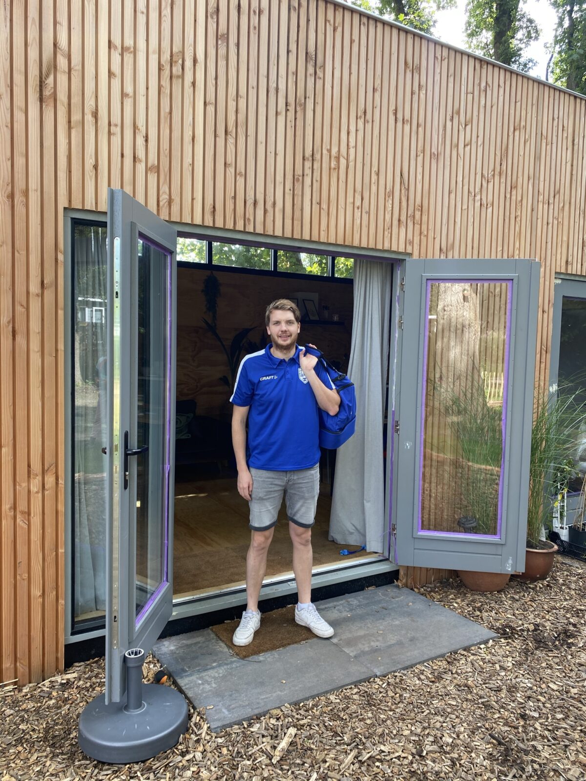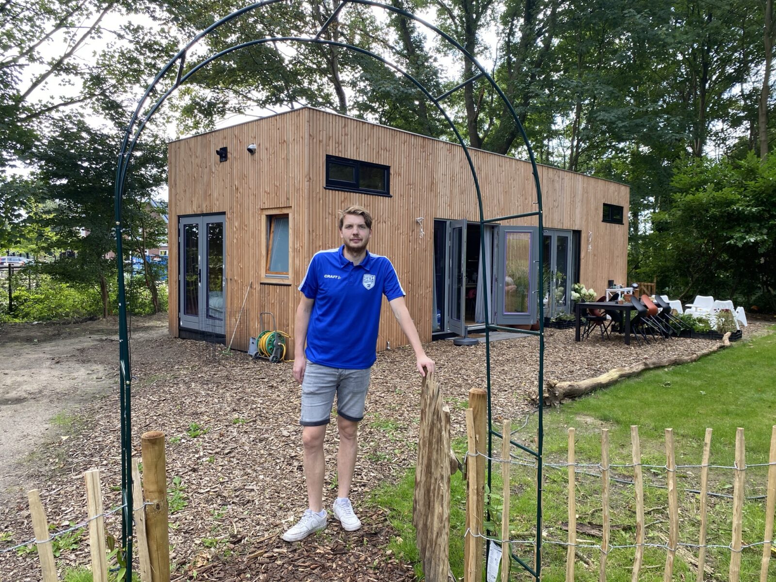 En daar komt het nieuwe chalet in beeld. Vriend en oud-teamgenoot Rick van Ommen heeft het gebouwd. Het resultaat is begin juli geplaatst op een kavel van De Koerberg. Het ziet er fraai uit, met een ruime keuken en woonkamer. Aan de zijkanten zijn meerdere slaapkamers te vinden. En er is een badkamer. Andere chalets staan op ruime afstand en met de vele omliggende bomen en struiken is de omgeving rustgevend te noemen. ,,Met de vakanties is het ideaal, er is hier altijd genoeg vertier’’, vertelt Michiel.