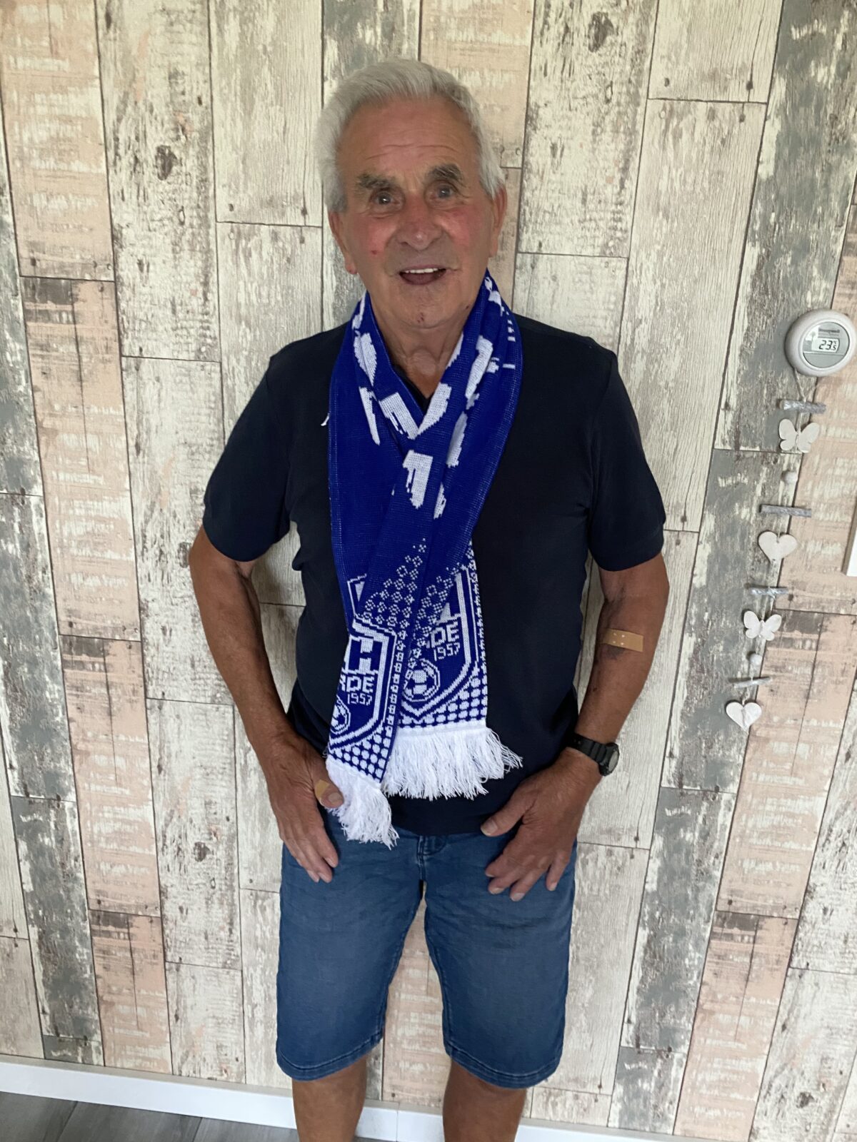 Visser is in mei 87 jaar geworden en woont met zijn vrouw Dicky in het westen van het land. Hij heeft nog niet zo lang geleden een operatie aan zijn voet gehad. Daardoor loopt hij buiten met rollator en in en rond het appartement gebruikt het oudste lid een wandelstok. ,,Voor mijn leeftijd gaat het nog redelijk goed, hoor’’, vertelt de fanatieke Feyenoord-supporter opgetogen.